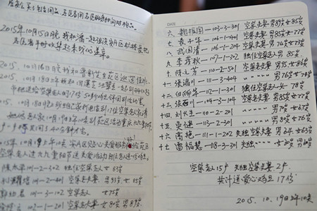 “2015年10月18日上午,我和田莲芝、汪翠兰一起到超市,把送给空巢老人的17份50多斤鸡蛋拿到活动室。2015年10月18日晚上,我在自己家打电话到17位空巢老人加,请他们10月19日上午10点到苑区活动室参加庆祝九九重阳节……”
