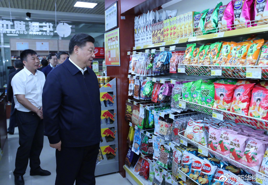 结束在辽宁抚顺的考察活动后,28日中午,习近平总书记乘车返回沈阳。中途在服务区短暂休息时,习近平特意走进旁边超市,仔细察看、询问商品价格和品质,还掏钱买了一袋江米条、一罐酱香什锦菜、两盒沟帮子熏鸡,一共花了131元。(文字记者张晓松 摄影记者鞠鹏)