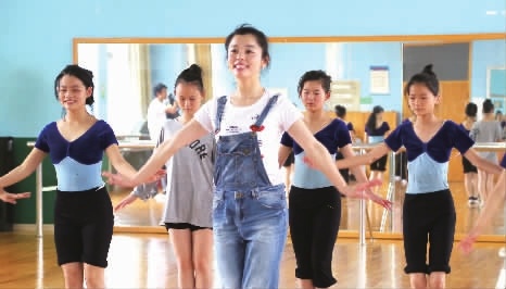 文化志愿者、中南大学教师郭贝贝为长沙特殊教育学校的孩子们上舞蹈课。