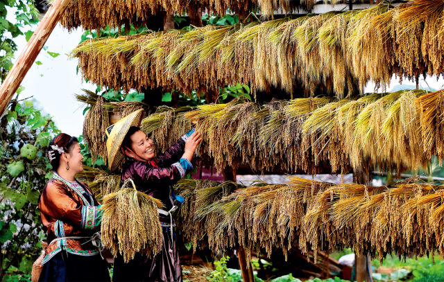 广西融水苗族自治县依托当地优越的生态环境优势,大力发展特色黑糯种植产业,带动山区群众增收脱贫 石峰摄
