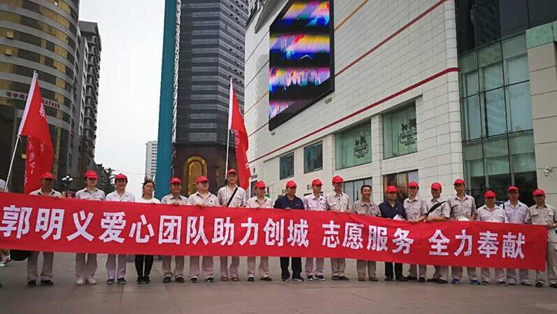全国道德模范郭明义同志与郭明义爱心团队百支分队开展助力创城活动。(图片来源:北方晨报)