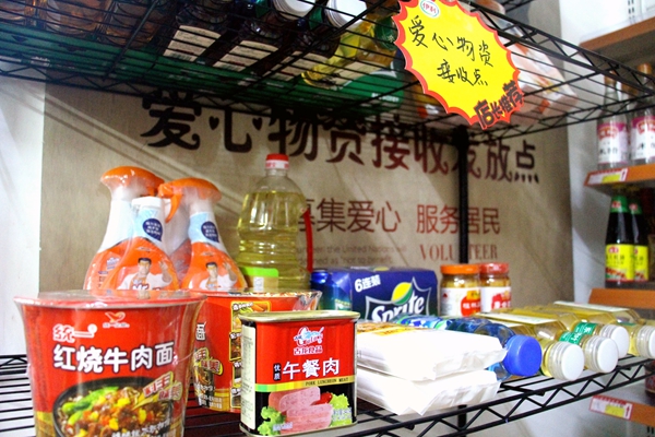 爱心物资接收点。图片来源:长沙文明网 记者 龙莉 摄