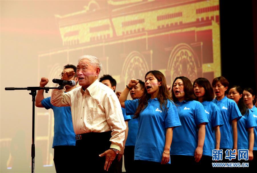 牛犇庄严宣誓,加入中国共产党。新华社记者 任珑 摄