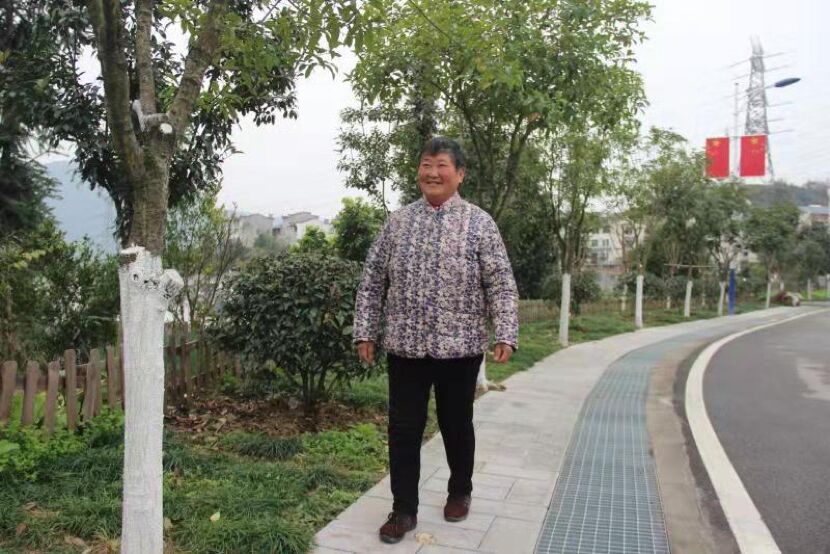 谭必珍在村中散步、锻炼(刘正军 摄)