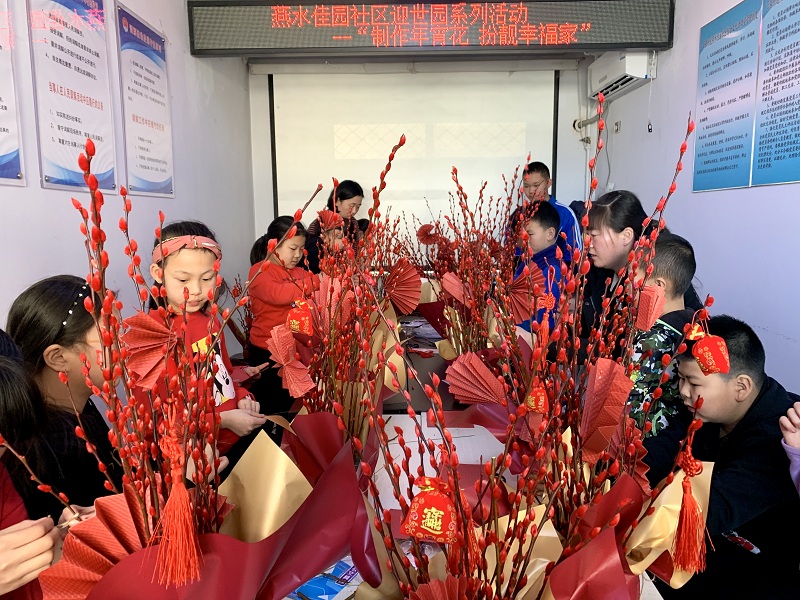 燕水佳园社区:制作年宵花 扮靓幸福家
