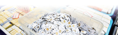 去年,广东警方开展“净网安网”专案收网行动,共打掉团伙40余个,缴获非法获取买卖的公民个人信息1.2亿余条。图为2018年6月28日,广东省公安厅内展示的涉案手机“黑卡”。 陈骥旻摄影报道