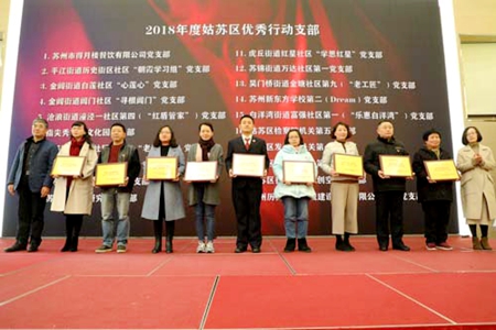 大会总结回顾了2018年度全区志愿服务工作、社区党组织为民服务工作等内容,并对荣获2018年度姑苏区最美志愿者、最佳志愿服务项目、最佳志愿服务团队、最佳“金乡邻”志愿服务社区、最佳社区党组织为民服务项目、最佳为民服务团队、优秀“行动支部”的个人及团体颁发了荣誉证书。
