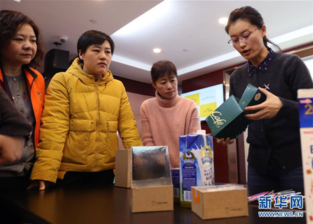 3月5日,在上海市妇女儿童服务指导中心,社区居民参与旧物改造利用小知识讲座。