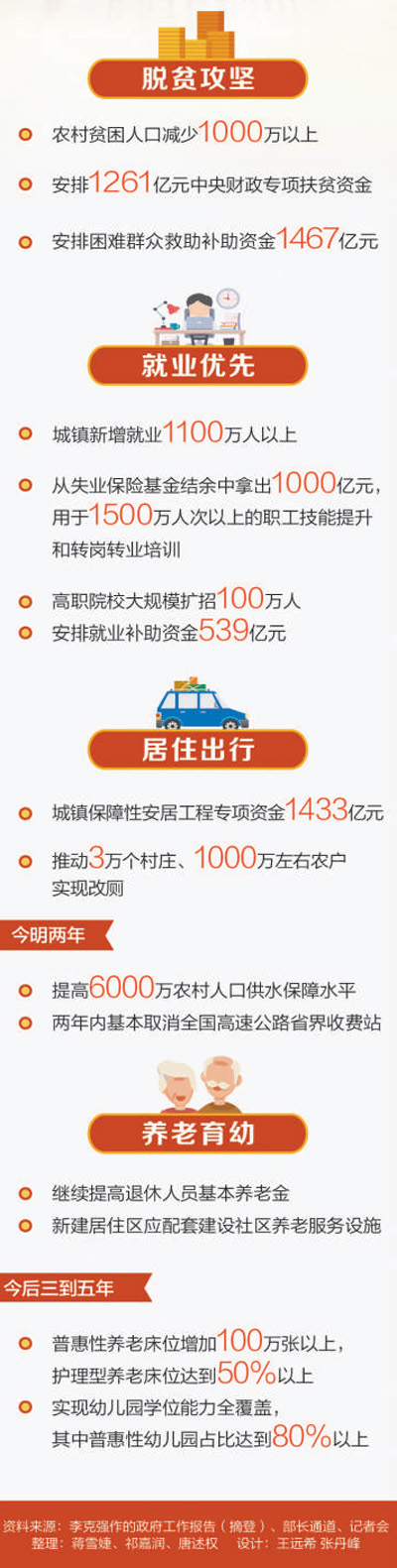 二氧化硫、氮氧化物排放量要下降3%,农村贫困人口减少1000万以上,新增高标准农田8000万亩以上,落实好小规模纳税人增值税起征点从月销售额3万元提高到10万元等税收优惠政策……今年全国两会期间,一系列增强人民群众获得感、提振市场信心的惠民惠企好政策发布。