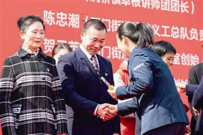 作为“一人一岗”志愿服务的践行者,昨日,多位党员志愿服务团队的领头雁走上台,和大家分享了20多年间身边涌现出的先进典型、感动案例。