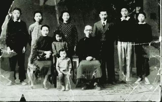 抗战胜利后,李声音英(后排左二)与父母及兄弟姐妹团聚,并与陈祖裕(后排右三)结婚