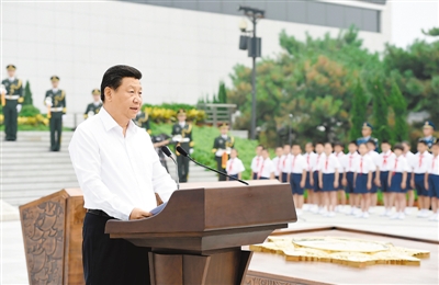 2014年7月7日,首都各界在中国人民抗日战争纪念馆隆重集会,纪念全民族抗战爆发七十七周年。中共中央总书记、国家主席、中央军委主席习近平出席纪念仪式并发表重要讲话。新华社记者 马占成摄