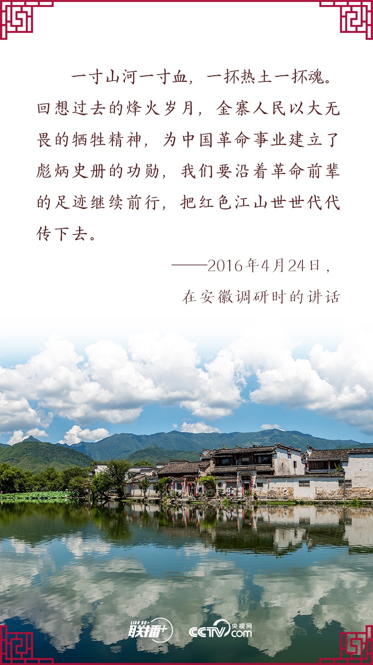 “建立中华人民共和国,这是无数革命先烈们用鲜血换来的。”习近平动情地说。安徽金寨、福建古田、山东沂蒙……总书记多次地方考察都特地赶往革命老区,这是对老区人民深深的惦念,更是对共产党人初心和使命永恒不变的追寻与担当。