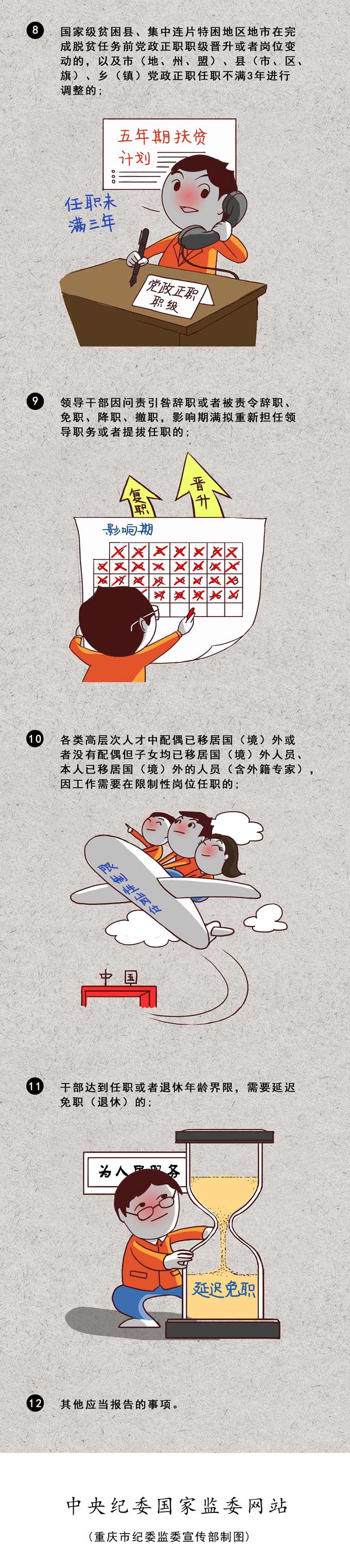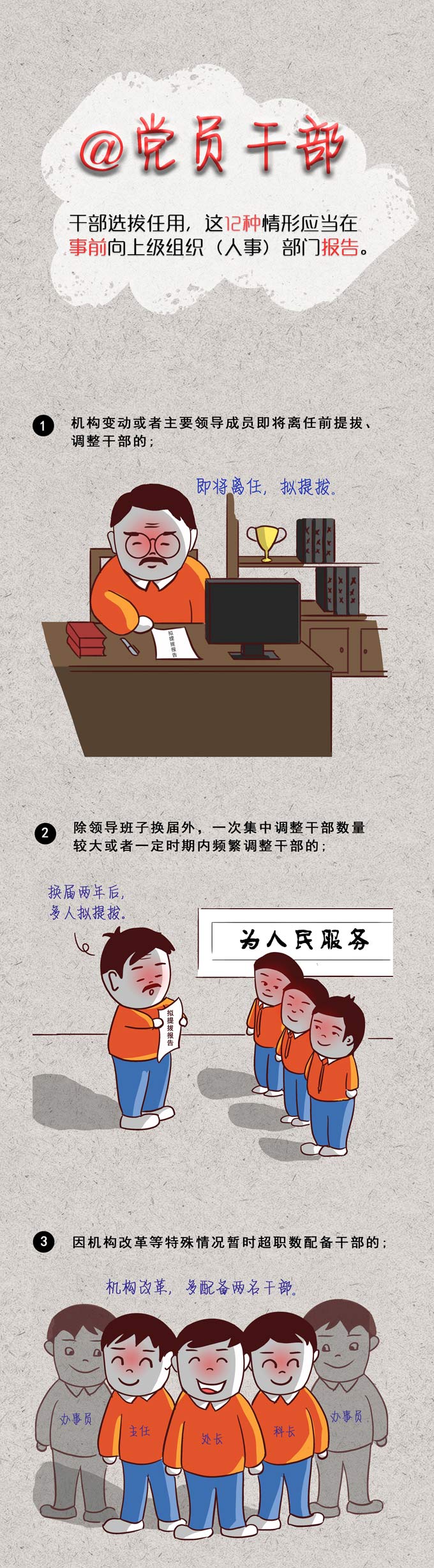 近日,中央纪委国家监委网站发布漫画《漫画|干部选拔任用这12种情形应当事前报告》,展示了在干部选拔任用中,这12种情形应当在事前向上级组织(人事)部门报告,接受监督检查。