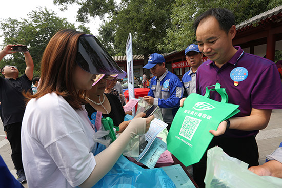 活动现场,志愿者“零距离”教授居民垃圾如何分类,讲解资源回收再利用的重要意义。史莉摄