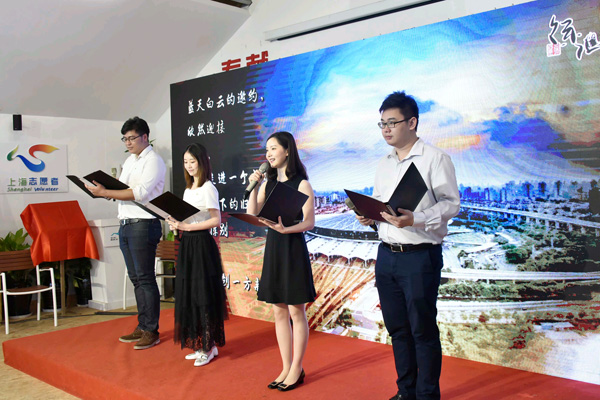 由青年志愿者倾情演绎的原创诗朗诵《蓝天下最美的践行》,全面展示了今年以来,徐汇区开展的21场“垃圾分类,徐汇在行动”文明系列主题实践活动的场景,展现了徐汇区各行各业投身垃圾分类工作的新时尚。其中,滨江建设者们也行动起来,组建垃圾分类、乐享学习、平安守护、自治管理、文化体育、文明引导、安全宣传7支志愿服务队,将志愿服务从原来的站点集中服务延伸到各项目工地现场,形成服务站与服务点相互融合的新模式,以带动更多建设者参与志愿活动。