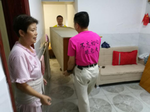 “社区同志,请问能不能帮帮忙?”2019年7月17日上午,依山社区工作人员小吴接到一位辖区居民的求助,原来这位面露难色的居民是辖区工人医院南院宿舍区的林阿姨,阿姨儿子常年在外打工,家里只剩下林阿姨和母亲相依为命,林阿姨自己身体也不好,还需要照顾年近90岁卧病在床的母亲,为了方便其照顾母亲,现在需要把卧室里的大柜子搬到客厅,无奈之下才来社区求助。