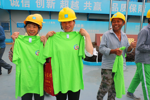 500份爱心衣物,一份纯绿,一份红白,一份沉甸甸的爱。近日,中建二局上海分公司松江天安金谷项目对农民工及其子女进行了爱心衣物的发放。看着他们脸上幸福微笑,项目爱心志愿者也露出的舒心的微笑。