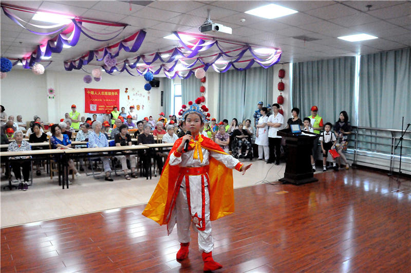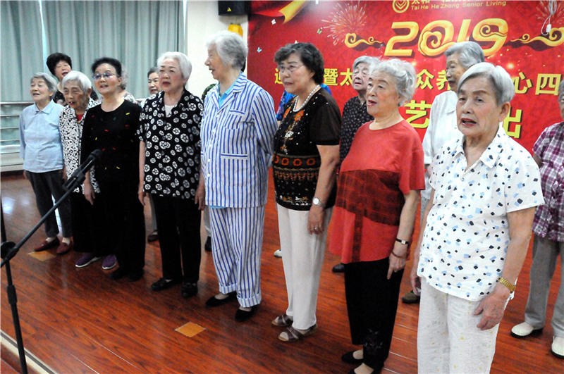 志愿者们为老人表演了精心准备的文艺节目,快板书《十九大精神放光芒》、歌舞《花木兰》、歌曲《让世界因我而美丽》等,赢得了在场老人们的阵阵掌声,他们的脸上始终洋溢着欢心的笑容。观看了志愿者表演的节目之后,太和·合众养老中心的老人们兴致勃发,由10多位老人上台同唱了歌曲《茉莉花》。