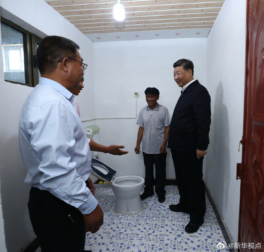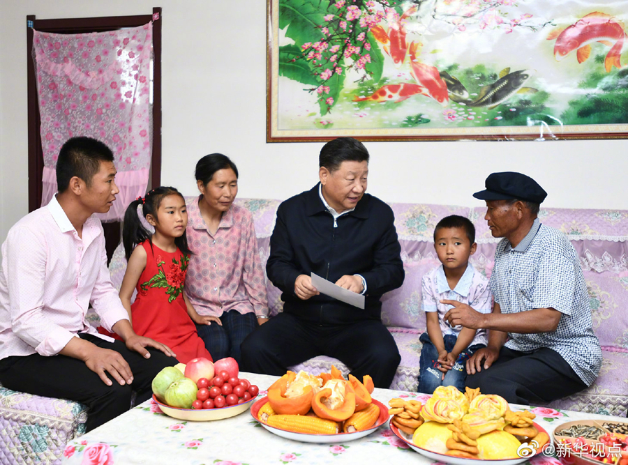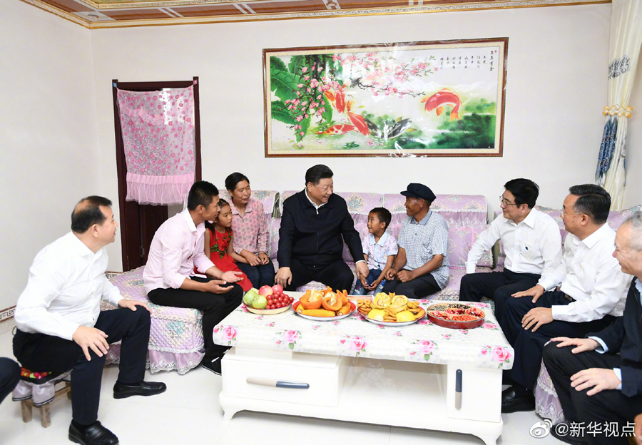 富民新村地处甘肃省古浪县黄花滩生态移民区,习近平总书记21日上午来到这里,看望从山区生态移民易地扶贫搬迁的乡亲们。他走进村民李应川家,小院洁净、住房敞亮、厨卫设施齐全。在客厅坐下来,李老汉拿出一张搬迁前的老照片给总书记看,曾经居住的土坯房同窗明几净的新居有天壤之别。习近平对这里群众生产生活条件发生的巨大变化感到十分欣慰,李老汉连连感叹现在日子太幸福了。习近平强调,你们高兴我们也高兴,共产党就是为人民服务的,就是为老百姓办事的,让老百姓生活更幸福就是共产党的事业。(文字记者:张晓松、朱基钗 摄影记者:鞠鹏、谢环驰)