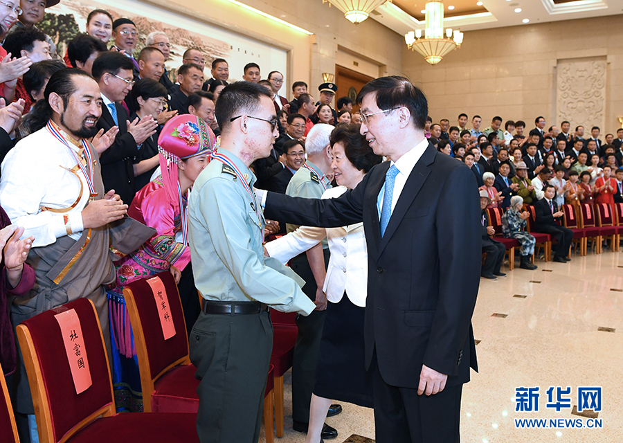 9月5日,第七届全国道德模范座谈会在北京举行。中共中央政治局常委、中央书记处书记王沪宁会见受表彰代表。 新华社记者 饶爱民 摄