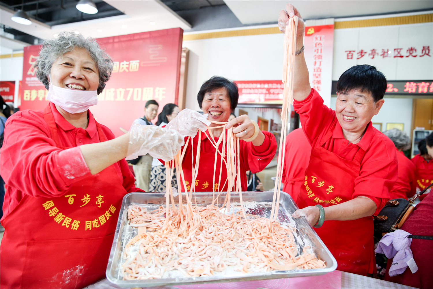 原标题:武汉2000余名社区居民同做长寿面为新中国庆生