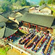 湖南省花垣县十八洞村摆起长龙宴。作为精准扶贫“首倡地”,十八洞村不仅成功摘掉了贫困的帽子,还成为小康示范村。新华社发