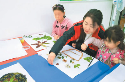 “童伴妈妈”项目志愿者吴红梅组织孩子一起做手工艺品。 受访者供图