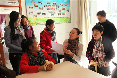 因为有智力残疾,向磊行走困难,生活不能自理,十多年前刚搬到社区时,父母上班期间只能把他锁在家里。了解到这一情况后,王波把他带到老年大学参与社区助残活动,学习生活自理。如今的向磊不仅会洗脸、刷牙,还会写字了,他积极参加残疾太极拳康复活动,每个星期还跟着社区居民一起升国旗。