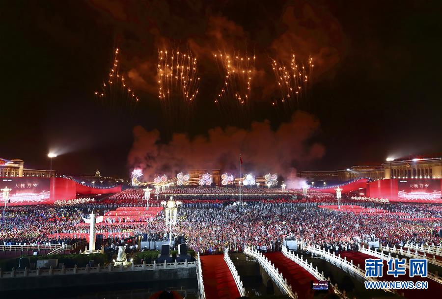 10月1日晚,庆祝中华人民共和国成立70周年联欢活动在北京天安门广场举行。 新华社发(任超 摄)