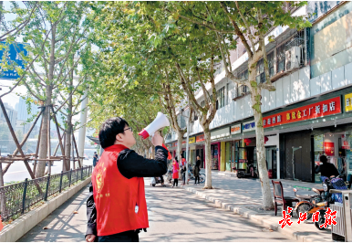 “首善江岸人人夸,文明晾晒靠大家;衣物鞋帽勿乱挂,临街沿线莫乱搭……”在解放大道临街居民楼前,西马街道熊家台社区志愿者马琎正沿着居民楼开展巡查,他手拿小喇叭,提醒居民文明晾晒。“军运会期间,会有很多外地游客过来,大家更要用行动维护城市文明形象。”他说。