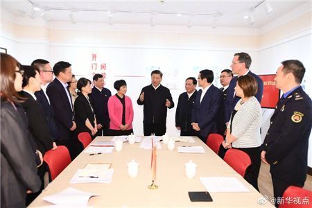 习近平总书记2日在上海市考察调研。当天下午,他来到杨浦区滨江公共空间杨树浦水厂滨江段、长宁区虹桥街道古北市民中心实地考察,了解城市公共空间规划建设和社区治理与服务情况,并同当地居民亲切交谈。(文字记者:张晓松 摄影记者:鞠鹏、谢环驰)
