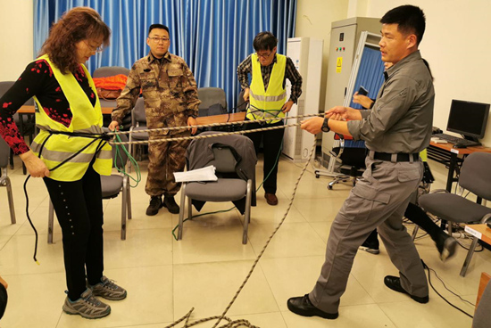救援队培训分三大部分进行:一是理论知识培训。包括灾情的分类、不同类别灾情的应急反应、灾情现场的应急处理和自我防护,以及救护过程中的注意事项。二是理论与实操培训。包括创伤与包扎技术、心脏复苏技术、绳索绳结技术、担架和捆绑传递技术等。三是现场演练。包括帐篷搭建、现场评估、综合演练等。