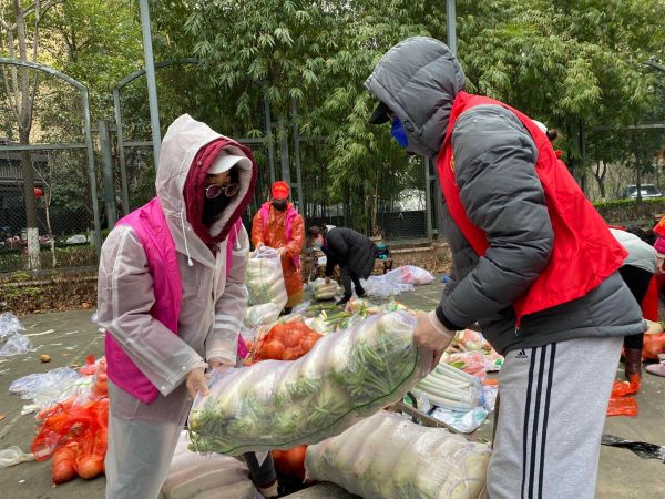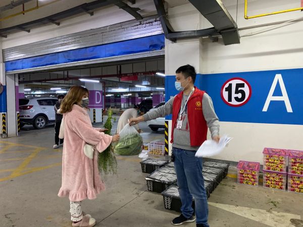 从2月底成立至今,志愿队对接商超运送5000多份肉类、4000余份爱心菜,上门送药送菜万余次。