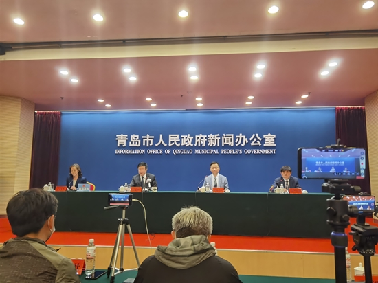10月12日晚,青岛市疫情防控情况新闻发布会举行。(摄影 人民网刘颖婕)