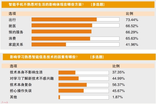 长者:最怕操作失误导致损失 遇到问题更愿意求助社工 近日,广州日报“花城老友记”联合多家社工组织开展一项微调研,在回答“影响学习熟悉智能信息技术的因素有哪些”时, 56。37%的长者认为技术本身较复杂,半数长者担心操作失误。