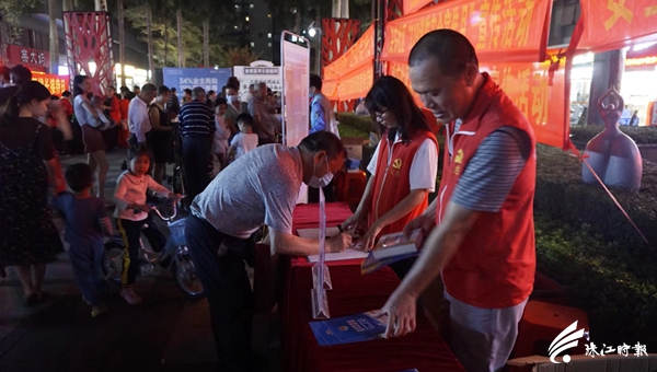 多个志愿服务摊位获居民点赞 当日下午5时许,尖东社区蓝湾北广场的星光大道上热闹非凡,一群群志愿者设好摊位,为路过居民提供爱心义剪、政策宣讲、便民服务接待等志愿服务。