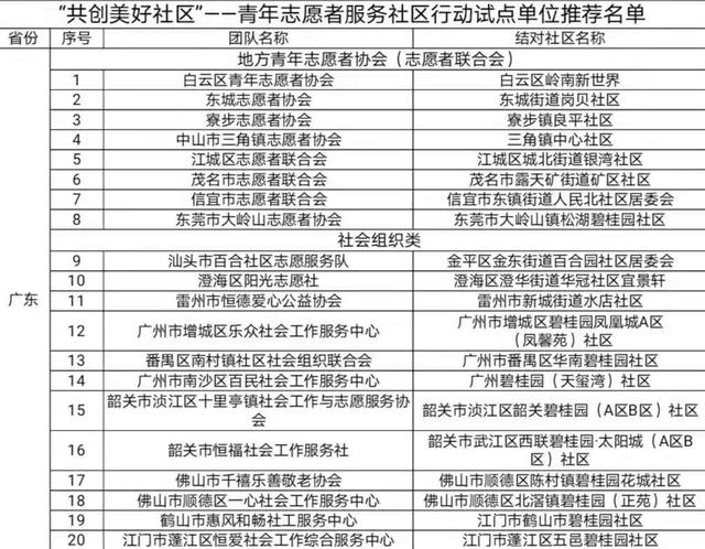 入选的志愿服务组织和社区都有哪些吧