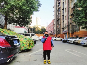 随后,喻天弈戴着口罩,一个人拿着喇叭走上大街,志愿者在后面远远跟着。没过多久,这位小志愿者的声音穿透整条街,迅速吸引了大家目光,不少人给他拍照点赞。周围有市民说:“这个小朋友很棒,好可爱。”