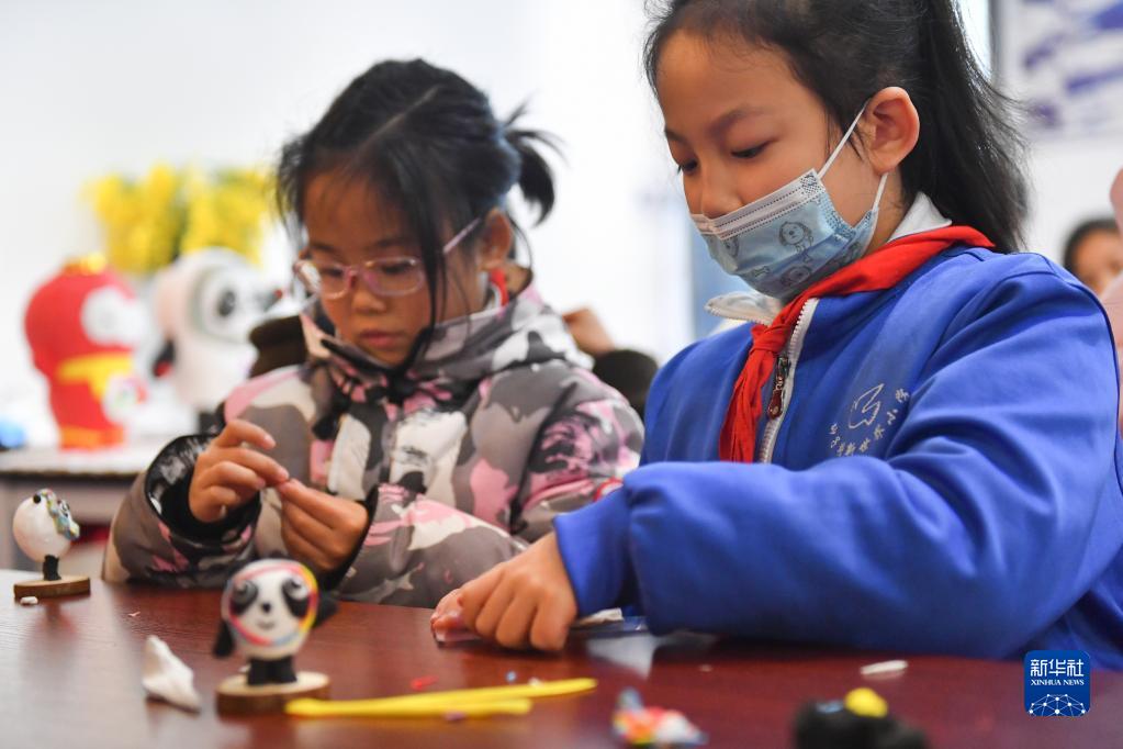 2022年北京冬奥会正在火热进行中。2月13日,在湖南省长沙市雨花非遗馆,非遗“面塑”艺人龙玉平和长沙市雨花区砂子塘新世界小学的小朋友一起用面、软陶等材料,手工捏制“冰墩墩”,通过寓教于乐的方式展示非遗技艺的魅力,传递冬奥精神,为冬奥健儿送上美好的祝福。