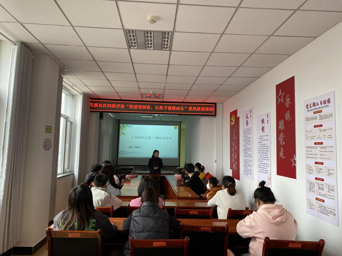 “竖轴”以宣讲教育讲座为着力点。新时代家庭家教家风教育贯穿于整个社会,为培育良好家风家教,营造积极健康向上家庭氛围,社区妇联定期在辖区开展“家风家教”教育讲座共10次左右,通过讲座向妇女儿童传输“弘扬中华美德,传承良好家风”的重要性,受益人数50余人,受到辖区妇女广泛好评,纷纷表示:老师的讲座让我们懂得在生活中如何用智慧处理婚姻中的各种矛盾,做一个家庭幸福、事业成功的新时代女性。