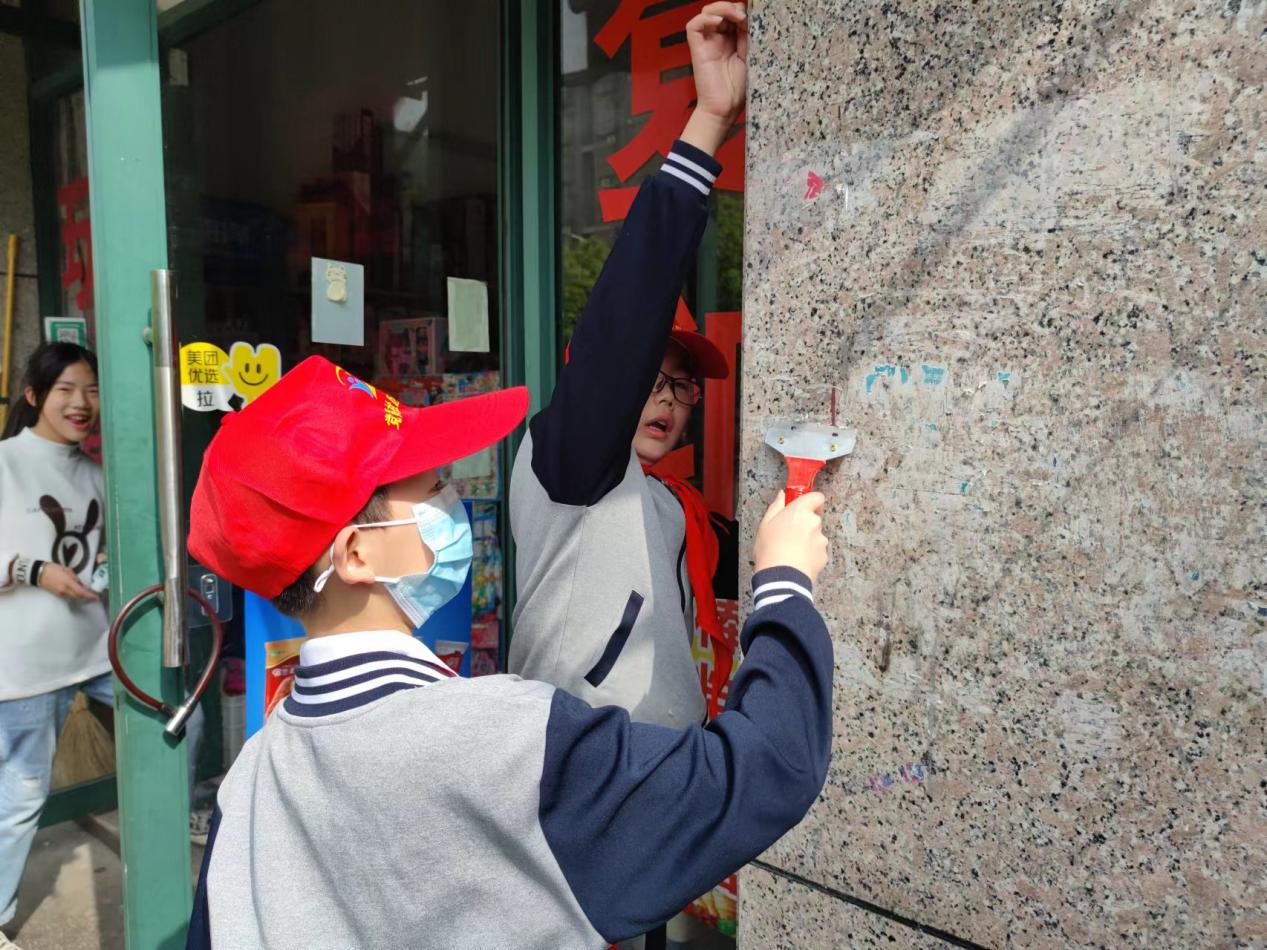 在人来人往的农贸市场周边,在商户、居民、路人的关注下,老师和学生志愿者不怕脏累,清除牛皮癣、清理垃圾、整治绿化、消除卫生死角、摆放整齐车辆……大家以美化环境和清洁家园为荣,乐在其中。