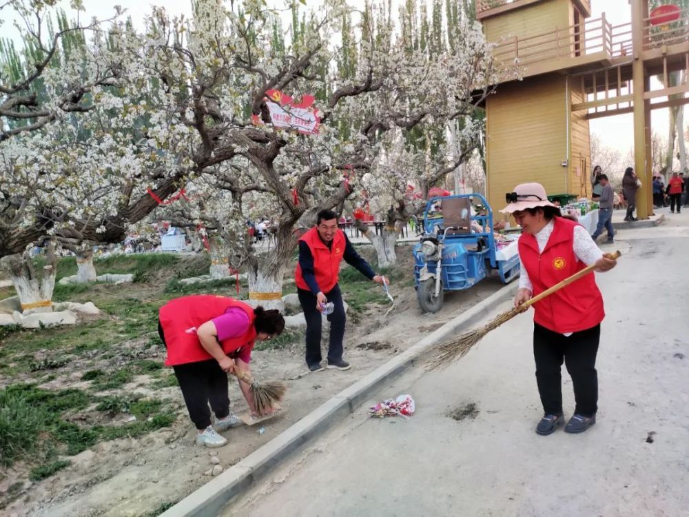 活动中,到处都能看志愿者们忙碌的身影,他们身穿红马甲,分工合作,配合默契,对停车场进行规范管理,引导外来车辆有序进入停车场,同时对商铺摊位进行引导,在娱乐区引导老人孩子注意娱乐安全、讲究卫生。此外,志愿者们还拿着劳动工具,对垃圾进行全面清理,用自己的实际行动带动广大村民自觉践行文明,提高环境保护意识,不少村民也被志愿者们的服务精神所感染,主动保持自己良好的卫生习惯。
