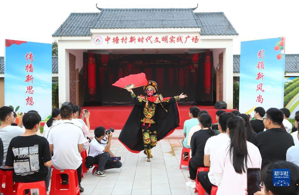 6月13日,人们在广东省廉江市“文明实践大篷车”进基层志愿服务活动现场观看文艺表演。