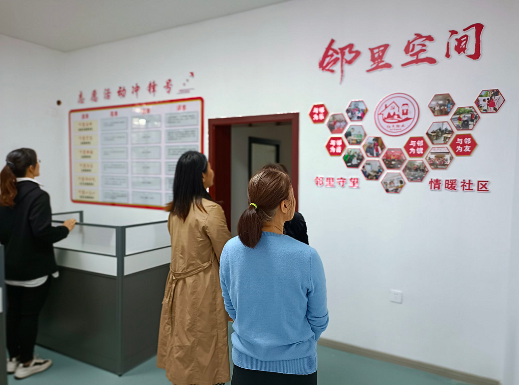 按“五室两站一家”的标准进行功能设置,多功能活动室、议事室等空间一应俱全。它是社区居民共建共治共享的“邻里空间”,是探索推进基层社会治理的载体。通过“邻里空间”的打造,钢丝厂社区实现服务群众全覆盖、零距离。通过建立邻里议事厅平台,召集物业、业委会、楼栋长、居民等召开邻里议事会,做到议事协商全参与,充分发挥基层群众的智慧,用群众的聪明才智,解决群众身边的问题。