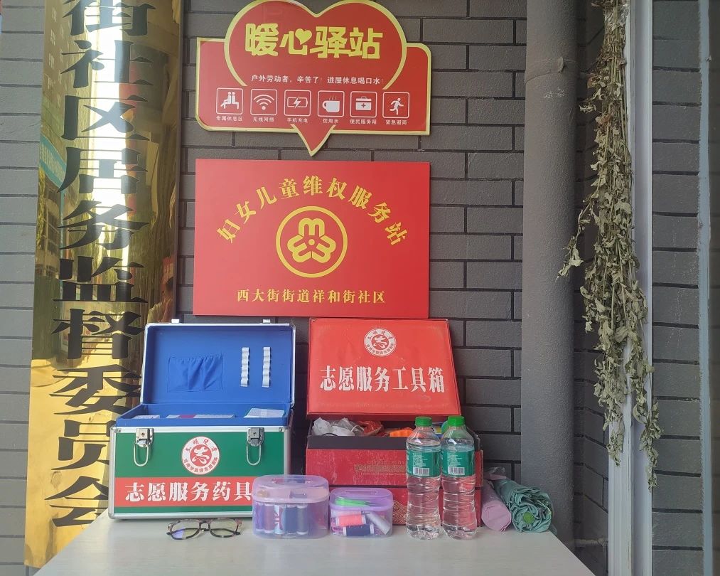 “党建+驿站+阵地”,打造便民“百宝囊”  祥和街社区紧扣新业态群体来源广、流动性强等特点,精心谋划、科学选址,通过党员干部、网格员实地走访、随机调研的方式广泛征求意见,制定暖心驿站实施方案。发挥社区党群服务中心的位置资源优势,将驿站建设成为民服务的“新基站”,配备休息座椅、报刊书籍、医疗急救包、饮水机、打气筒、工具箱、针线盒等便民用品,切实解决新就业群体吃饭难、充电难、如厕难、休息难等现实问题,从提供“小微”贴心服务做起,打造群众身边的“便民休息圈”。