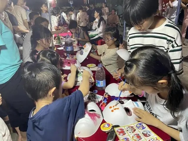 当晚,“文明播种人”汕头大学学生文化科技卫生“三下乡”志愿服务团队现场布设了公益摄影、扇子绘画、象棋擂台、灯谜会、脸谱绘制、AI游戏等多个摊位,举行了丰富多彩的晚会歌舞表演,为乡村群众和放假学生带来一场别开生面的文明实践活动。