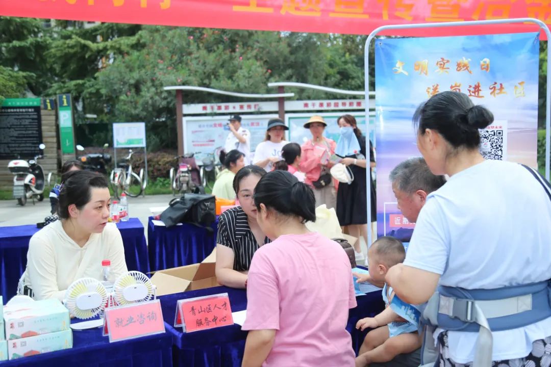 该区文旅局通过发放宣传折页、现场解答等方式,倡导大家自觉遵守公共场所礼仪、保护生态环境、保护文物古迹、注重文明食宿。青山区人才服务中心向居民详细讲解创业培训、技能培训、就业失业登记等政策。南干渠游园管理处带来的植物医生问诊解决了居民养花种草中的困惑。街道平安办、应急办、派出所还向来往居民普及防火防灾、文明养犬等政策知识,“一对一”地讲到群众的“心坎里”。
