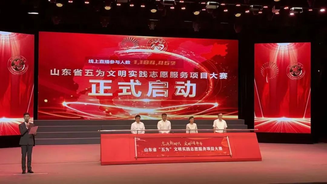 8月19日,山东省“五为”文明实践志愿服务项目大赛在济宁启动,全省各地文明实践中心(所、站)、志愿服务组织和志愿者100多万人,通过网络直播收看实况。