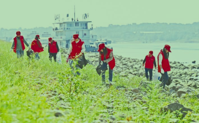 “长江哨兵”志愿服务队在长江猇亭段开展志愿服务。(湖北日报资料图片)
